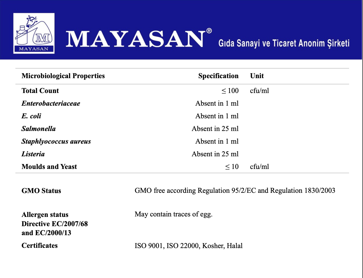 MAYOZYME GRANULAR — це спеціалізований ферментний препарат, призначений для запобігання мікробіологічному псуванню харчових продуктів. Він ефективно пригнічує розвиток шкідливих бактерій, що особливо важливо для запобігання дефектам у сироварінні (наприклад, пізньому здуттю сирів).